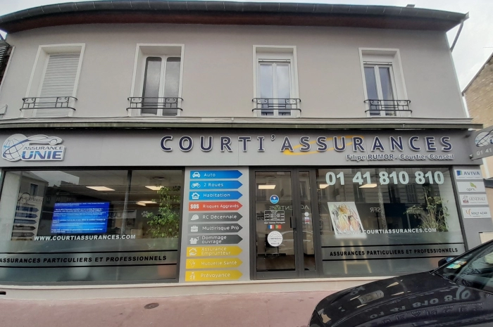 Création d'une façade / vitrine - enseigne Courti' assurances - SAINT MAUR DES FOSSES (94)
